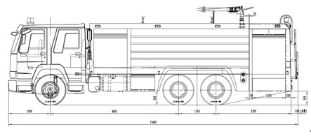 12噸泡沫消防車采用中國重汽集團濟南卡車股份有限公司 ZZ5356V524MF5 型二類汽車底盤,原裝雙排駕駛室,乘員2+4人,該車駕乘舒適輕便。上裝采用外露式水罐,整車載液量為水10000kg;泡沫2000kg。器材箱采用高質(zhì)量鋁合金卷簾門。底盤取力,發(fā)動機型號為MC11.44-60 ,最大功率327kW,通過萬向聯(lián)軸器驅(qū)動安裝在汽車尾部泵房里的西安華宇CB10/100型低壓消防泵,可在1.0MPa下穩(wěn)定輸出100L/s的流量;車頂安裝成都威斯特消防器材有限責(zé)任公司生產(chǎn)的PLKD8/80型消防炮,流量80L/s,對應(yīng)壓力0.8MPa,最大承壓1.3MPa,純水射程75m,泡沫射程70m,可360°旋轉(zhuǎn)。同時該車具有比功率大、綜合性能強、操控集中簡便等特點。