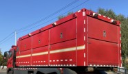 整車采用中國重汽集團(tuán)生產(chǎn)的汕德卡ZZ5356V524MF1 6×4型專用二類底盤改制而成。以車載拉臂鉤裝載集裝箱模塊的形式運(yùn)輸相關(guān)消防設(shè)備器材,且根據(jù)需要可以由一個(gè)底盤配置不同功能的箱體,實(shí)現(xiàn)一車多用。