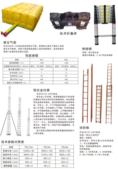 應(yīng)用場合:用作撲救火災(zāi)時(shí)登高救人,滅火或翻越障礙。